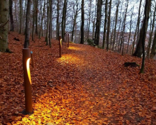 Vakre Bøkeskogen i Larvik er nå enda en attraksjon rikere – Turløypa «Langreisa» har fått nytt lys!